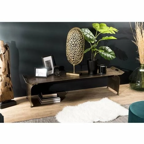 MACABANE JONAS – Table Basse Rectangulaire/console Basse 163x40cm Aluminium Doré – Doré
