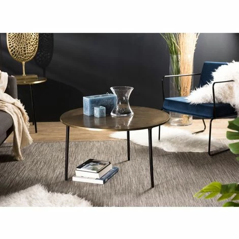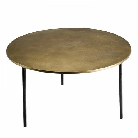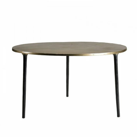 MACABANE JONAS – Table Basse Ronde 80x80cm Plateau Aluminium Doré Pieds Noirs – Doré
