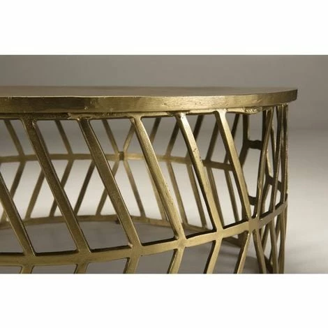 MACABANE JONAS – Table Basse Ronde 89x89cm Aluminium Doré Piètement Graphique – Doré