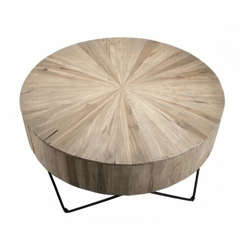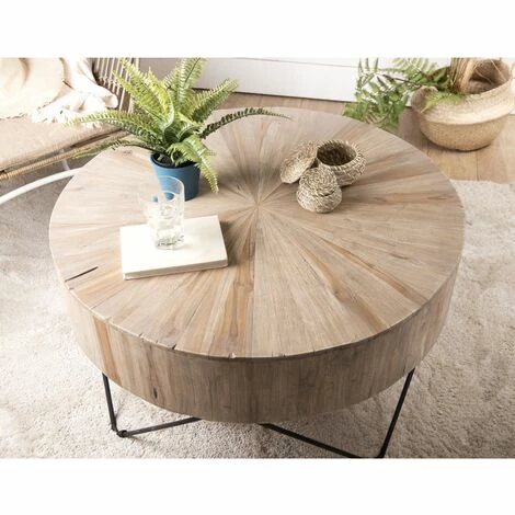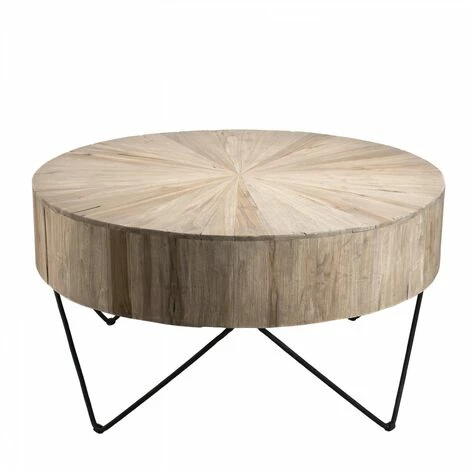 MACABANE LALY – Table Basse Ronde 90x90cm Bois Teck Naturel Pieds épingles Scandi Métal Noir – Bois Naturel