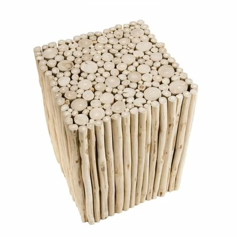 Table d’appoint carrée 35x35cm bois naturel petites branches Teck. Dimensions : 35 x 35 x 45,5 cm. Article en Teck. Place au naturel ! Cette gamme en teck propose des designs aux matières naturelles, douces et chaleureuses. Tout le charme du naturel est réuni dans cette table d’appoint carrée en bois flotté ! Composée de petites branches en teck clair, elle est très lumineuse. 100% naturelle, elle saura trouver sa place dans chacune de vos pièces. Son petit format est vraiment pratique pour y poser vos objets du quotidien. Meuble monté