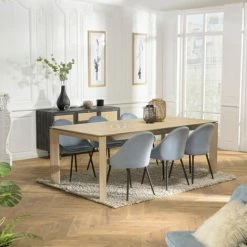 Table à manger rectangulaire extensible 220/320cm bois chêne. Dimensions : 220 x 100 x 76.5 cm. Article en Chêne/Mdf/Acier. Cet article est composé de bois recyclé ! Le bois recyclé est un bois récupéré de vieilles charpentes, de coques de bateaux ou tout bois de récupération ayant déjà eu une longue vie. C’est ce qui lui donne cet aspect vieilli et authentique avec ses imperfections qui font tout son charme. Acquérir du bois recyclé est une initiative écoresponsable qui permet de lutter contre la déforestation. Optez pour cette magnifique table à manger en bois de chêne. Très simple, elle s’associe à n’importe quelle décoration grâce à sa teinte claire et solaire. Celle-ci est extensible et peut devenir gigantesque pour vous permettre d’inviter votre famille et vos amis en toute tranquillité. Meuble monté, pieds à visser