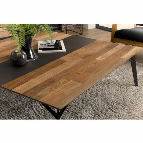 Table basse carrée 120x120cm bois Teck recyclé métal et pieds métal noir. Dimensions : 120 x 120 x 40 cm. Article en Teck recyclé et Acier. Cet article est composé de bois recyclé ! Le bois recyclé est un bois récupéré de vieilles charpentes, de coques de bateaux ou tout bois de récupération ayant déjà eu une longue vie. C’est ce qui lui donne cet aspect vieilli et authentique avec ses imperfections qui font tout son charme. Acquérir du bois recyclé est une initiative écoresponsable qui permet de lutter contre la déforestation. Optez pour une table basse carrée bicolore. Composée de bois de teck recyclé et de métal noir, elle trouvera forcément sa place chez vous. Ses matières ajouteront un côté industriel et beaucoup de charme à votre maison. Meuble monté, pieds à visser
