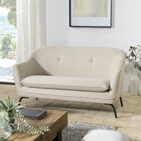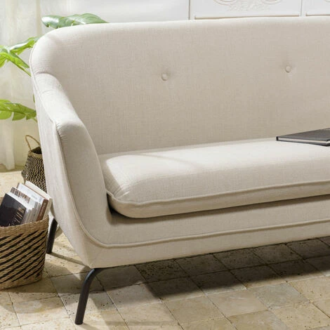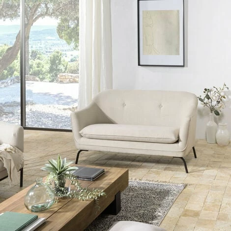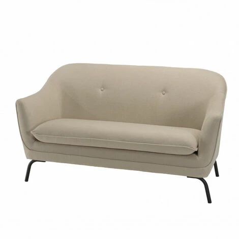 Canapé beige 2 places pieds en métal noir. Dimensions : 150 x 77 x 84 cm. Article en Tissu polyester / Acier / Mélèze / Contreplaqué. Attention : Les pieds sont à l’intérieur de l’assise Apportez un style cosy à votre intérieur ! Ce canapé 2 places peut convenir pour un petit espace. Son assise est vraiment moelleuse, vous pourrez y ajouter des coussins pour davantage de confort. Son coloris intemporel s’adapte en toutes circonstances et s’invite chez vous pour égayer votre pièce. Meuble démonté