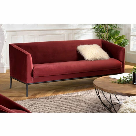 Canapé NEW YORK 3 places tissu couleur bordeaux pieds métal noir. Dimensions 182 x 71 x 73 cm. Article en velours et métal. Ce magnifique canapé peut accueillir jusqu’à 3 personnes, pour que vous puissiez passer d’agréables moments en famille ou entre amis. Sa jolie couleur bordeaux apportera chaleur et élégance à votre pièce. Meuble monté, pieds à visser