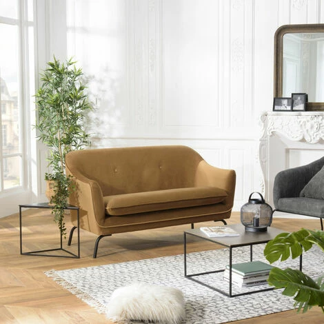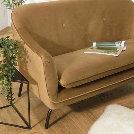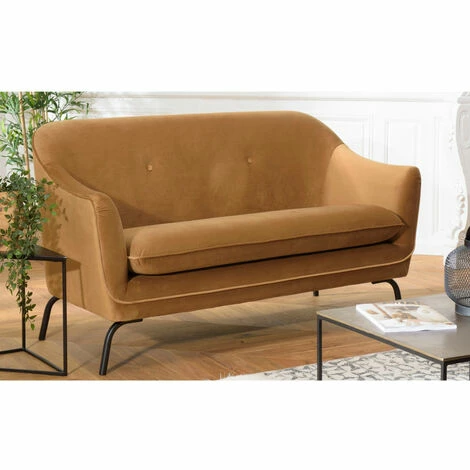 Canapé ROME 2 places couleur camel pieds métal noir. Dimensions 149 x 76 x 84 cm. Article en velours et en métal. Cet adorable canapé peut accueillir 2 personnes. Sa douce couleur camel illuminera votre pièce au quotidien. Confort et légèreté seront au rendez-vous. Meuble monté, pieds à visser