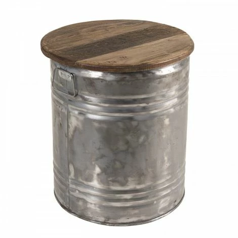 Table d’appoint ronde 40x40cm bidon acier et bois recyclé – esprit Brocante. Dimensions : 42 x 42 x 49 cm. Article en Bidon acier et Bois recyclé. Cet article est composé de bois recyclé ! Le bois recyclé est un bois récupéré de vieilles charpentes, de coques de bateaux ou tout bois de récupération ayant déjà eu une longue vie. C’est ce qui lui donne cet aspect vieilli et authentique avec ses imperfections qui font tout son charme. Acquérir du bois recyclé est une initiative écoresponsable qui permet de lutter contre la déforestation. Partez à la découverte avec cette collection à l’esprit brocante. Le bois recyclé et les designs vintage vous rappellerons tous les trésors cachés dans vos greniers. Meuble monté