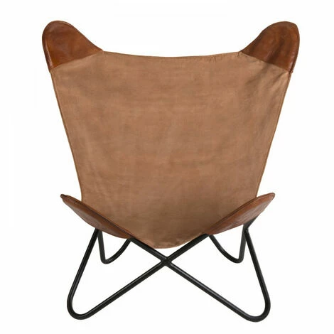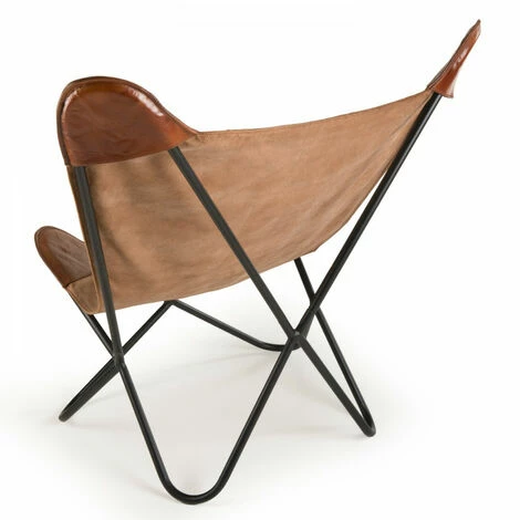 MACABANE ROBIN – Chaise Butterfly Marron Toile Et Cuir Pieds Métal Noir – Marron