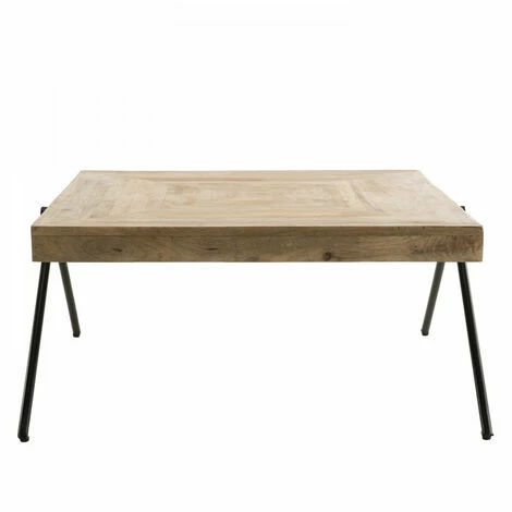 MACABANE ROBIN – Table Basse Carrée Bois Manguier Pieds Métal Noir ‘COMPAS’ – Naturel