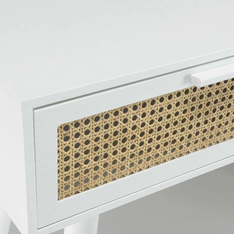 MACABANE SANDRO – Console Blanche 2 Tiroirs Cannage Naturel – Blanc