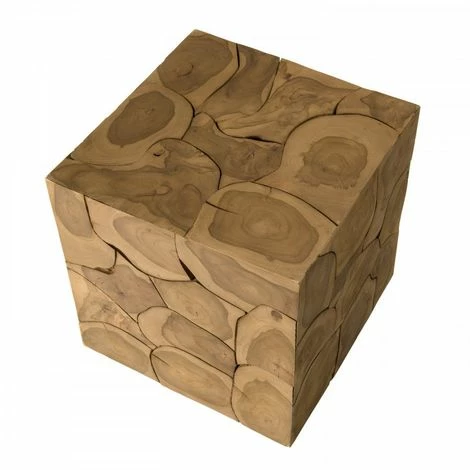 Cube 40x40cm bois Teck nature. Dimensions : 40 x 40 x 40 cm. Article en Teck. Cet article est composé de bois recyclé ! Le bois recyclé est un bois récupéré de vieilles charpentes, de coques de bateaux ou tout bois de récupération ayant déjà eu une longue vie. C’est ce qui lui donne cet aspect vieilli et authentique avec ses imperfections qui font tout son charme. Acquérir du bois recyclé est une initiative écoresponsable qui permet de lutter contre la déforestation. Meuble monté