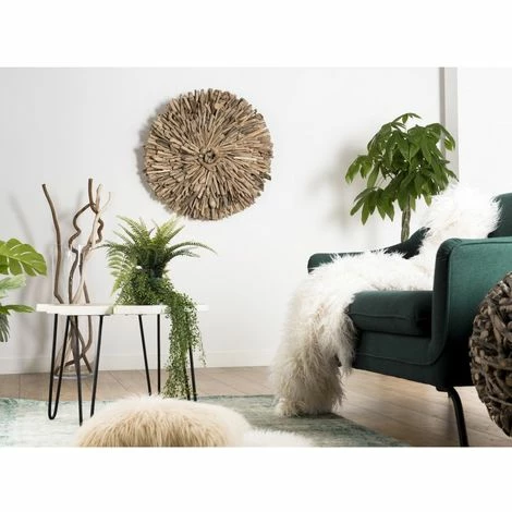 Décoration murale ronde 80x80cm bois flotté. Dimensions : 80 x 80 x 9 cm. Article en Bois flotté. Cet article est composé de bois recyclé ! Le bois recyclé est un bois récupéré de vieilles charpentes, de coques de bateaux ou tout bois de récupération ayant déjà eu une longue vie. C’est ce qui lui donne cet aspect vieilli et authentique avec ses imperfections qui font tout son charme. Acquérir du bois recyclé est une initiative écoresponsable qui permet de lutter contre la déforestation. Meuble monté