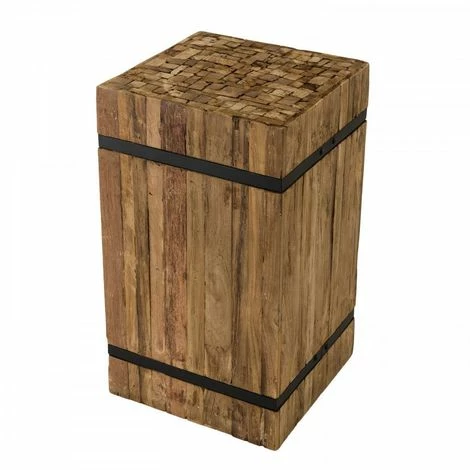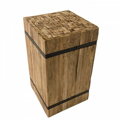 Table d’appoint carrée ‘M’ 34x34cm bois Teck recyclé cerclée métal noir. Dimensions : 34 x 34 x 61,5 cm. Article en Teck recyclé. Cet article est composé de bois recyclé ! Le bois recyclé est un bois récupéré de vieilles charpentes, de coques de bateaux ou tout bois de récupération ayant déjà eu une longue vie. C’est ce qui lui donne cet aspect vieilli et authentique avec ses imperfections qui font tout son charme. Acquérir du bois recyclé est une initiative écoresponsable qui permet de lutter contre la déforestation. Meuble monté
