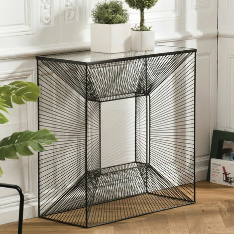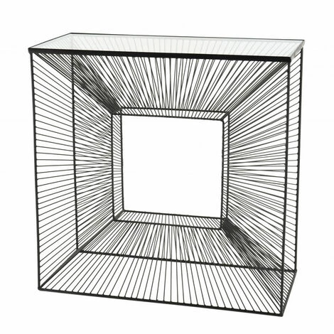 Console carrée métal noir plateau verre. Dimensions : 80,5 x 35,5 x 81 cm. Article en Métal et Verre trempé. Osez l’originalité ! Laissez-vous tenter par cette collection, des meubles design en métal avec des formes géométriques tendances pour décorer votre maison avec finesse. Imaginez cette superbe console en métal noir et verre dans votre intérieur ! Son look raffiné vous séduira au premier coup d’œil. Elle trouvera sa place dans chacune de vos pièces pour y faire régner l’élégance. Son plateau vous permettra d’y poser tous vos objets favoris : bougies, clés, décoration… Meuble monté