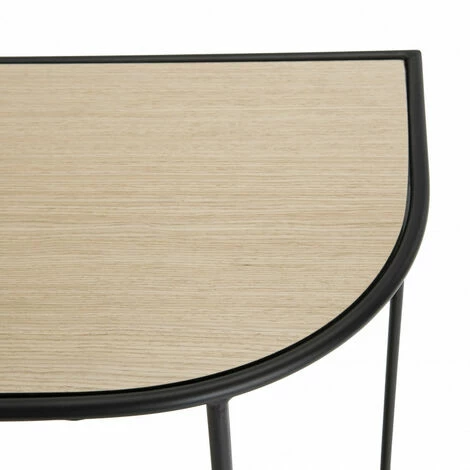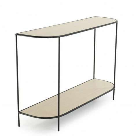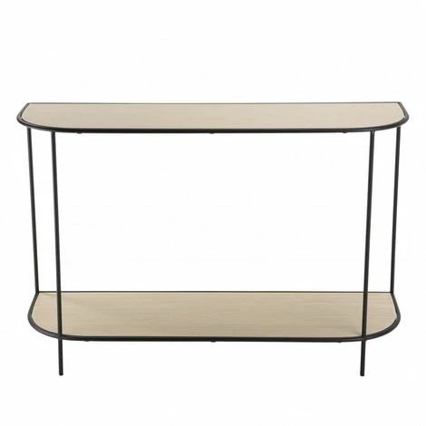 Console double plateau bois clair pieds mĂ©tal noir. Dimensions : 120 x 35 x 81 cm. Article en MĂ©tal et Panneaux de fibres Ă densitĂ© moyenne. Osez l’originalitĂ© ! Laissez-vous tenter par cette collection, des meubles design en mĂ©tal avec des formes gĂ©omĂ©triques tendances pour dĂ©corer votre maison avec finesse. Adoptez cette console aux formes arrondies en bois et en mĂ©tal chez vous ! IdĂ©ale pour votre entrĂ©e ou dans votre salon, elle est vraiment pratique. Ses deux matières offrent un joli contraste tout en finesse. Son double plateau vous donne la possibilitĂ© de poser davantage d’objets Ă portĂ©e de main. Meuble montĂ©