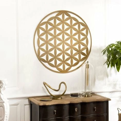 Décoration murale ronde 95x95cm métal doré. Dimensions : 95,5 x 1 x 95,5 cm. Article en Métal. Osez l’originalité ! Laissez-vous tenter par cette collection, des meubles design en métal avec des formes géométriques tendances pour décorer votre maison avec finesse. Pour une décoration murale tendance, laissez-vous charmer par ce splendide article en métal doré ! Ses formes abstraites font tout son charme. Sa structure ronde habillera votre mur de façon très élégante. Vous ne pourrez plus vous en passer… Meuble monté