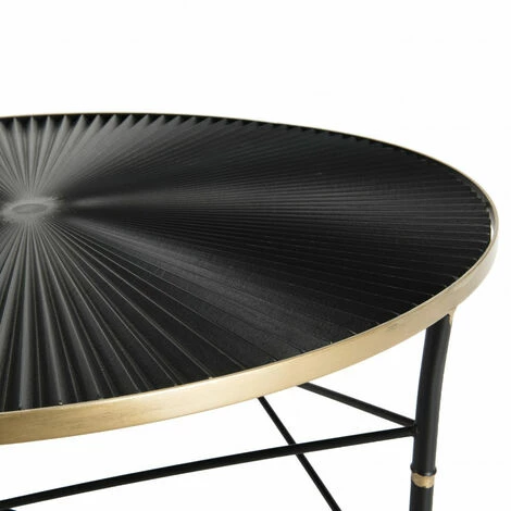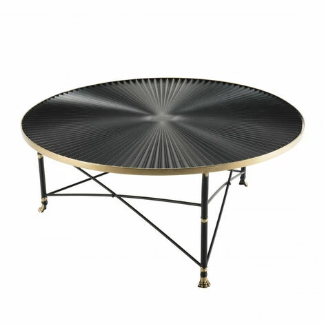 MACABANE THEODORE – Table Basse Ronde 91x91cm Ceinture Dorée Pieds Métal Noir – Noir Et Doré