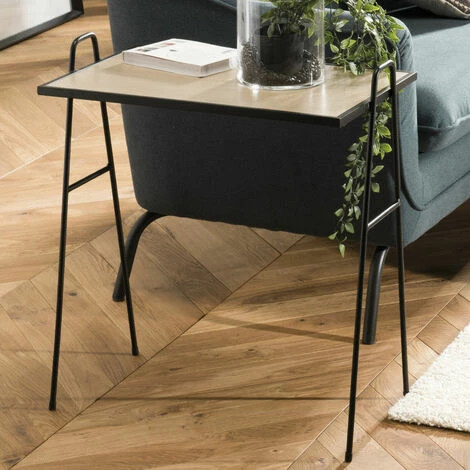 Table d’appoint 57×35 cm plateau bois clair pieds métal noir. Dimensions : 57 x 35 x 65 cm. Article en Métal et Panneaux de fibres à densité moyenne. Osez l’originalité ! Laissez-vous tenter par cette collection, des meubles design en métal avec des formes géométriques tendances pour décorer votre maison avec finesse. Optez pour cette table d’appoint épurée dans votre intérieur ! Composée de métal et de bois clair, elle est totalement chic. Vous pourrez la disposer près de votre canapé pour un maximum de confort. Meuble monté