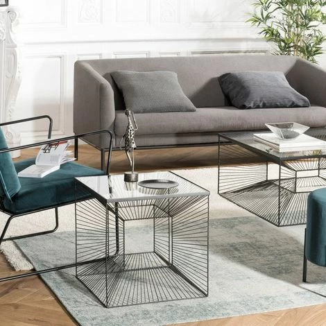 Table d’appoint carrée 45.5×45.5cm métal noir plateau verre. Dimensions : 45,5 x 45,5 x 45,5 cm. Article en Métal et Verre trempé. Osez l’originalité ! Laissez-vous tenter par cette collection, des meubles design en métal avec des formes géométriques tendances pour décorer votre maison avec finesse. Apportez de l’élégance dans votre intérieur grâce à cette table d’appoint carrée noire ! Intemporelle, elle peut être disposée dans votre entrée, salon ou une chambre grâce à son petit format. Sa transparence est idéale pour illuminer votre pièce. Meuble monté
