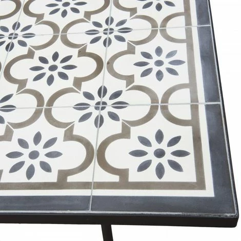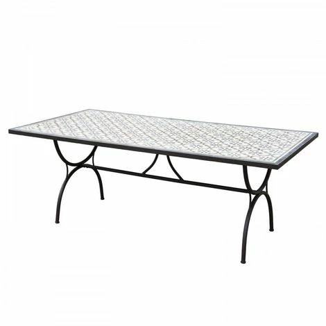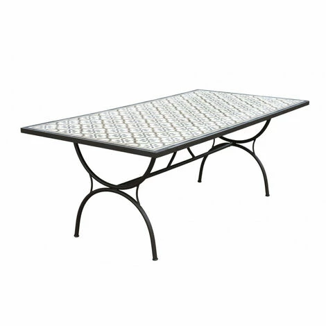 Table de jardin rectangulaire 6/8 personnes. Dimensions : 203 x 102 x 74 cm. Article en carreaux de ciment et pieds arc de cercle en métal noir. Pour un été chic et ensoleillé, cette table de jardin est idéale. Cette grande table en carreaux de ciment de 200×100 cm sera parfaite pour vos déjeuners de famille ou vos repas entre amis. Les motifs de ses carreaux et ses pieds en arc de cercle apportent un côté original et très décoratif pour donner du peps à votre extérieur. Il est fortement conseillé d’abriter ce mobilier et de le protéger du gel pendant la période hivernale afin qu’il ne s’abîme pas. Meuble monté, pieds à visser