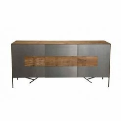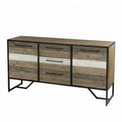 MACABANE LEANDRE – Buffet 2 Portes 3 Tiroirs Acacia Et Acier – Multicouleurs Vieillies