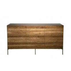 MACABANE ERNESTO – Buffet Marron 3 Portes Acacia Pieds Métal Noir – Marron