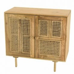 MACABANE ISA – Buffet Marron 2 Portes Bois De Manguier Et Cannage Pieds Métal Doré – Marron