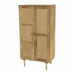 MACABANE ISA – Meuble Marron 2 Portes Bois De Jamelonier Et Cannage Couleur Naturelle – Marron