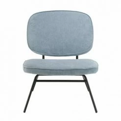 MACABANE ESTELLE – Chaise En Velours Bleu Clair Pieds Métal Noir – Bleu