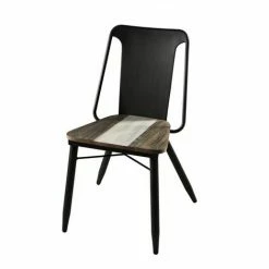 MACABANE LEANDRE – Lot De 2 Chaises Noires Acacia Et Acier – Multicouleurs Vieillies