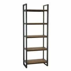 MACABANE ALIDA – Étagère Recto-Verso 5 Niveaux 75x40x200cm Teck Recyclé Métal Noir – Brun