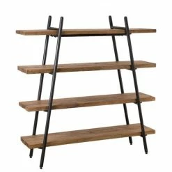 MACABANE ALIDA – Étagère Marron 4 Niveaux Teck Recyclé Acacia Mahogany Et Métal Noir – Brun