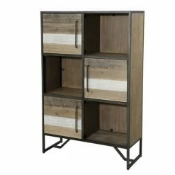 MACABANE ANDREA – Bibliothèque 4 Portes 1 étagère Bois Pin Recyclé Naturel Et Métal Noir – Brun