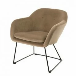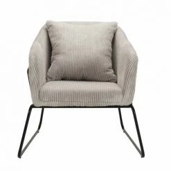 MACABANE ALBANE – Fauteuil Tissu Velours Cotelé Gris Anthracite Pieds évasés Métal – Gris Anthracite