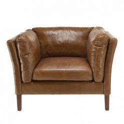 MACABANE GASTON – Fauteuil Marron CHESTERFIELD Capitonné Vintage 1 Place Cuir Pieds Bois – Marron