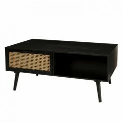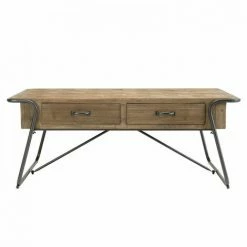 MACABANE EDITH – Table Basse Bois Naturel 4 Tiroirs Pieds épingles Métal Noir – Marron