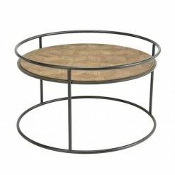 MACABANE HABY – Table Basse Ronde 80x80cm Plateau Sapin Marqueté Pieds Métal – Naturel