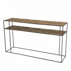 MACABANE ALIDA – Console Marron 4 Niveaux Teck Recyclé Acacia Mahogany Recyclé Et Métal Noir – Brun